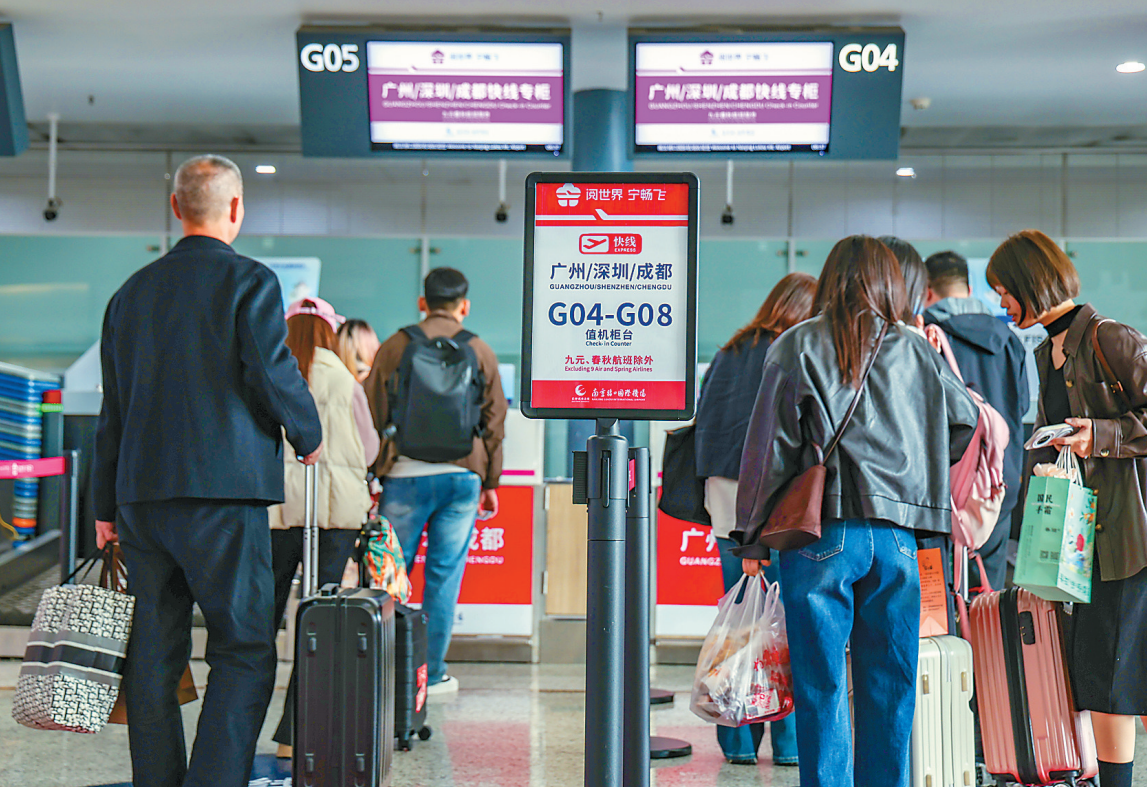 为提升快线服务品质,南京禄口国际机场设置值机区、专用安检通道及近机位资源,无托运行李旅客起飞前15分钟抵达登机口即可完成“一刻”登机。下一步,南京禄口国际机场将以“广深蓉”3条快线为基础,持续优化服务标准,并计划对昆明等核心枢纽航线的快线化运行开展调研论证。