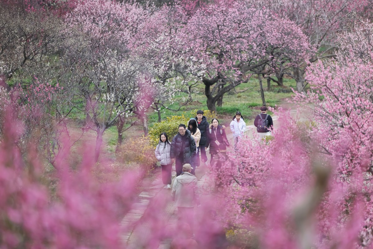 2月25日,素有“天下第一梅山”美誉的南京明孝陵梅花山迎来盛花期。漫山梅花姹紫嫣红,竞相绽放,吸引众多市民与游客纷至沓来,赏花拍照。蒋文超 摄